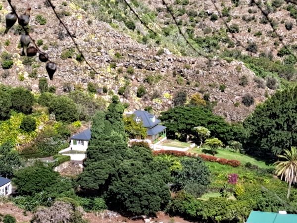 As jy van bo van die teerpad buite Jamestown afkyk, sien jy hierdie pragtige gesig van Briars Pavilion waar Napoleon gewoon het tot Longwood House voltooi is.