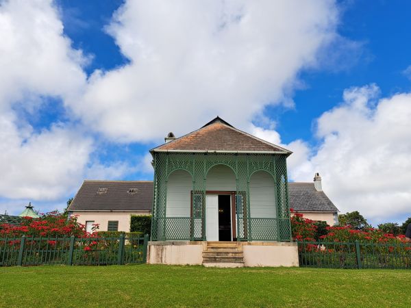 Met ons vroegoggend ontmoeting op die eiland in die Suid-Atlantiese Oseaan, het Barry bietjie agtergrond gegee terwyl ons onderweg was na Briars Pavilion, so ’n katspoegie buite Jamestown. Dis ons eerste stopplek vir die oggend. Daar is mooi tuine en ’n reusegrasperk en die stilte en koelte van die gebou omvou jou.