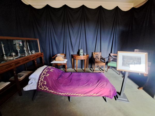 Twee dae ná sy dood is sy doodsmasker se afdruk geneem en op 9 Mei is hy begrawe. Langs sy doodsbed lê die doodsmasker. Die kamer is in skemerte gehul en ruik effe muf; iets waaroor die keiser destyds baie gekla het.