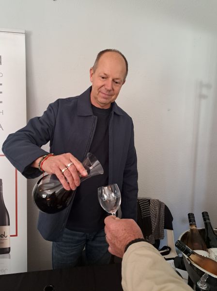 Marc Machtelinckx, eienaar van Ameera Handcrafted Wines en ook lid van die Belgiese Kamer van Koophandel in Suid-Afrika, gooi proesels van sy Envie-rooiversnit. (Foto: Clifford Roberts)