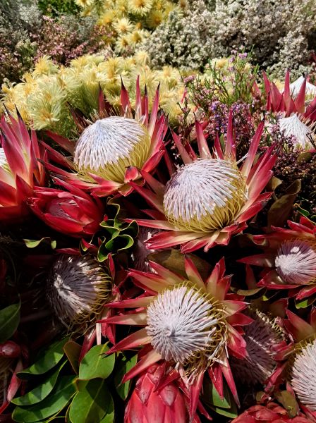 Hy het vertel dat hierdie die grootste uitstalling nog was, met bykans 25 000 stele fynbos-snyblomme. Die uitstalling verteenwoordig die Kaapse berge, veral die Kaapse Vougordel – ’n reeks berge wat van die Cederberg, 200 kilometer noord van die Kaapse Skiereiland, vir 850 kilometer langs die kus tot by Gqeberha in die ooste strek. Hierdie majestueuse berge is miljarde jare gelede gevorm, toe die Falkland-plato teen die Afrika-plaat vasgestoot het en veroorsaak het dat die sedimentêre rotslae in parallelle lyne oor die vlaktes opgevou het.
