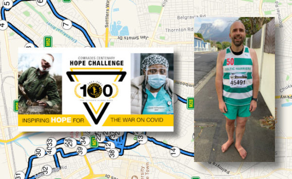 “Op 13 Junie 2021 het ’n paar duisend mense regoor die wêreld ’n virtuele wedloop gehardloop. Ek ook. Ek het die 45 km kaalvoet gehardloop.”
