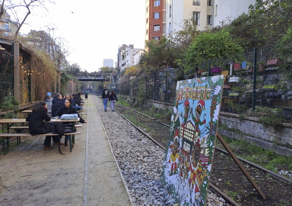 Die ou perron is omskep in ’n terras wat uitkyk oor die spoorlyn. Langs die spore is daar nou ’n stedelike plaas – kompleet met hoenders wat kekkel, groentetuine wat in die Paryse somer gedy en byekorwe wat die stad se unieke heuning produseer.