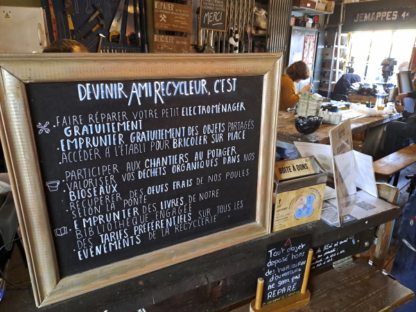 ’n Klein donasiekassie staan op die toonbank. “Dié plek heet René se Werkswinkel (L'Atelier de René) en daardie nutsmanne help jou ook om jou eie items te herstel. Dit is ’n daad van verset teen die moderne ‘weggooikultuur’,” verduidelik sy terwyl ons verder stap.