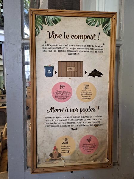 Weer is ’n jong meisie by om te verduidelik dat La REcyclerie ontwerp is om jou aktief te betrek, nie net te voed nie. Daar is byna daagliks iets aan die gang – van jogaklasse en vlooimarkte tot dokumentêre vertonings en debatte oor klimaatsverandering. Dis ook ’n baie gewilde boekbekendstellingsvenue.