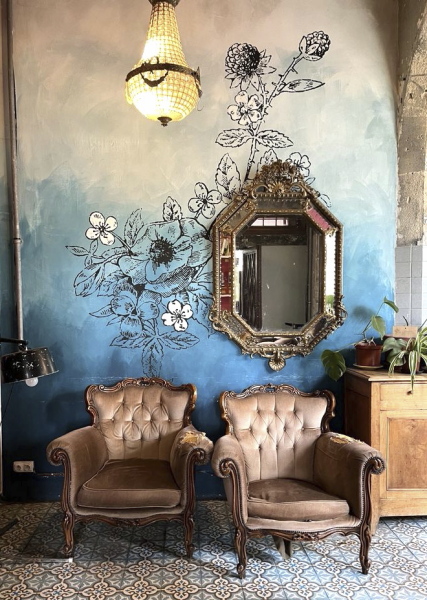 Selfs die dekor is ’n huldeblyk aan dié sirkulêre ekonomiebeginsels. Hanglampe is gemaak van ou kombuisgereedskap, die stoele is ’n eklektiese mengsel van vlooimarkvondste en oral waar jy kyk, is daar plante wat uit onwaarskynlike houers groei. Die middelpunt van die binnekant is die massiewe kroeg en oop kombuis, waar die energie tasbaar is.