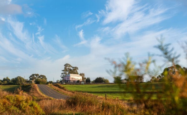 Maak toe jou oë. Verbeel jou wuiwende koringlande waarin die windjie patroontjies dans. Verbeel jou ’n teerpad wat in die verte teen persblou berge doodloop. Draai af, by ’n padstal verby. Deur ’n klein laagtetjie ... en daar staan ’n ligpienk hotelletjie soos ’n wafferse Bagdad Cafe uit Percy Adlon se 1987-film.
