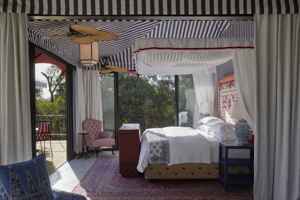 Ons suite – een van net ses – herskryf my definisie van “tent”. Onder seil, ja, maar met Persiese matte onder my voete, ’n vrystaande pootjiesbad, binne- en buite-storte, ’n privaat verhitte plonspoel en glasdeure wat oopskuif na die bosveld. Dis ultra-modern, maar met ’n hart wat klop in ritme met die veld. In die antieke houtkas is ’n volledige kroeg met ys, suurlemoen vir jou G&T en yskoue vonkelwyn uit die Kaap.