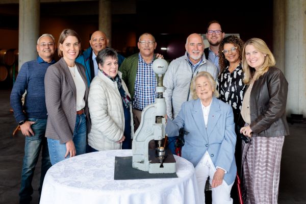 Tydens die glansgeleentheid waar die munt geslaan is, is agter van links, Craig Bergsma, Marc Trout, Peter Steyn (al drie van Kaapse Munt) en Dirk Coetzee (Pinotage Assosiasie). In die middel is Lucille Botha, Elsabe Ferreira, Beyers Truter en Belinda Jacobs (al drie van Pinotage Assosiasie) en Natanya van Niekerk (Kaapse Munt). May sit heel voor.