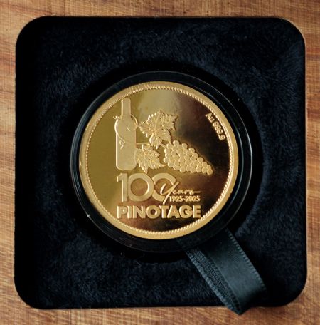 May het onlangs ’n goue munt gedruk vir Pinotage se 100ste verjaardag.
