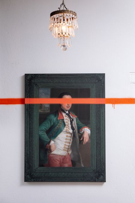 The Damaged Duke depicts an 18th century figure – the likes of whom would’ve been similar to the guests of the then-master of the Roundhouse, Cape Sir Lord Charles Somerset. The print is complete with elaborate illusion frames that has been defaced by spray-paint, with a vivid orange line across the subject’s face.