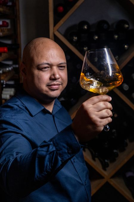 Sam Ross, Salsify se sommelier, wat kan raad gee oor al die spesiale wyne op hul spyskaart en in hul versameling.