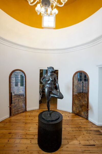 Langs my hang ’n skildery van ’n tipiese 18de-eeuse hertog of heer, getiteld The Damaged Duke, maar sy gesig en veral oë het ’n verfstreep deur. Hy verteenwoordig een van die vele gaste wat destyds by Lord Charles Somerset sou kom kuier het. Daardie worsteling met die gebou se geskiedenis is ook hier sigbaar.