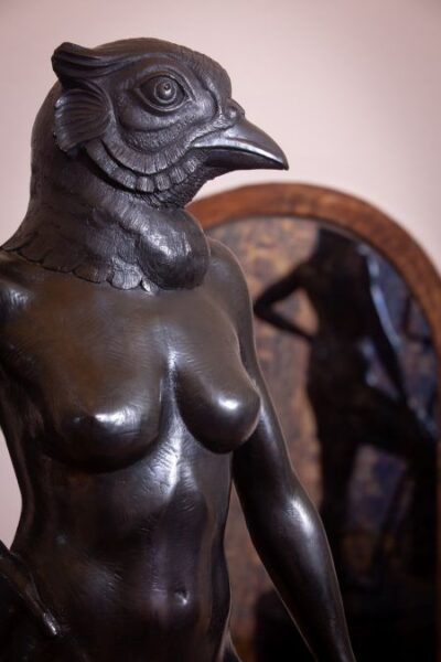Bo en onder: Lady Salsify deur Jan Otto du Plessis begroet jou in die middel van die gebou.