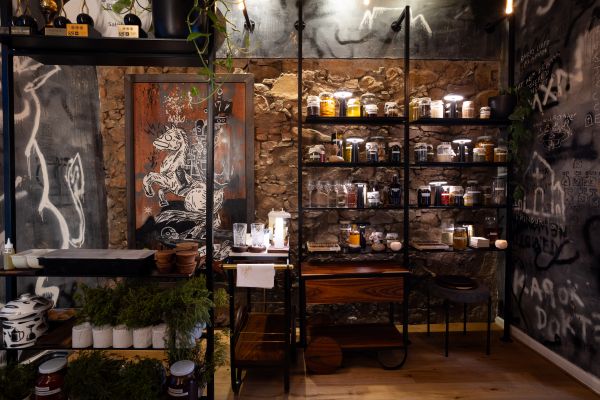 Terwyl twee sjefs werskaf, kom vertel een van die span ons meer van die gebou se geskiedenis en die pragtige vertrek waarin ons sit. Die oorspronklike messelwerk van die historiese gebou word hier gekontrasteer met rebelse graffiti deur die internasionale straatkunstenaar Louis de Villiers (Skull Boy). Die werk vertel die verhaal van een van die gebou se vroegste inwoners, James Barry, en dié anargistiese kunsstyl worstel met die gebou se moeilike geskiedenis. Die rak teen die muur is oortrek met gepreserveerde skatte uit die kombuis en dis ook hier waar die suurdeegplantjie, Bob, al vir ses maande in ’n fles leef.