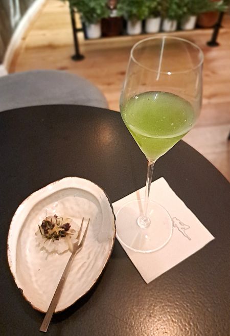 Ons stap deur na The Preservation Chamber vir spesiale drankies en ’n peuseldingetjie. Die reuk van inheemse kruie en fynbos vul jou neus. Ons geniet ’n Impepho Fizz en perlemoen. Die idee agter die Impepho as inspirasie én bestanddeel, hoor ek later by Ryan, is omdat Impepho (wilde bergsalie) tradisioneel gebruik word om ’n ruimte te reinig. Dit word by Salsify in tee gebrou en dan as basis gebruik vir die verwelkomingsdrankie. Ryan sê in hul geval is dit amper ’n reinigingsdrankie vir besoekers wat hul ruimte betree.