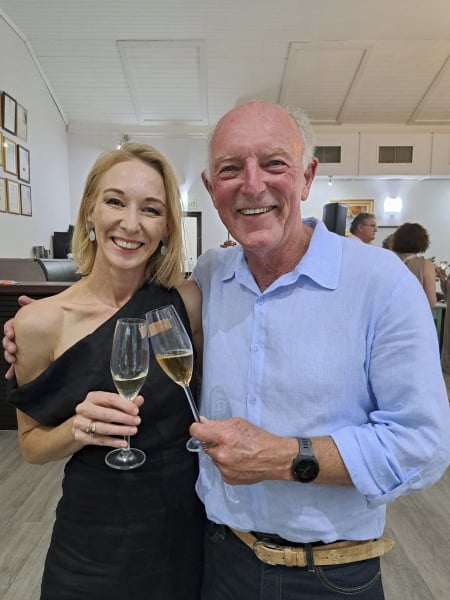 Nie ver van die wynmakers nie sit die eienaars van Clos Malverne, Seymour en Sophia Pritchard.