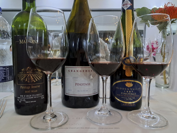 Op die spyskaart is die 1997-Clos Malverne, -Grangehurst en -Hidden Valley; die 2007-Clos Malverne en -Grangehurst; die 2009-Clos Malverne en -Grangehurst; en die 2011-Clos Malverne en -Grangehurst Pinotages. Van die wyne se laaste bottels word uitgeskink. Mens voel nietig.