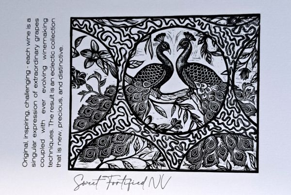 Die wynetikette is ook uniek: Die wynmakers het ’n linosnee van ’n beeld onder leiding van die bekende kunstenaar Theo Paul Vorster geskep om die etikette te vorm. Elkeen het hul eie etiket ontwerp wat deur hul eie persoonlike ervaring van die wingerd en wynmaakproses geïnspireer is.