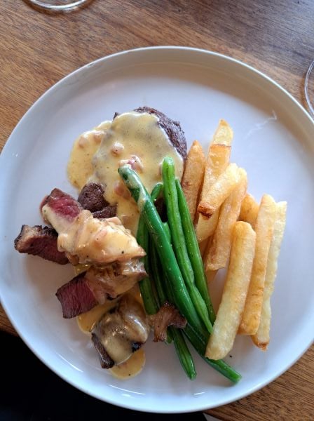 Steak en chips is presies waarvoor die Syrah gevra het!