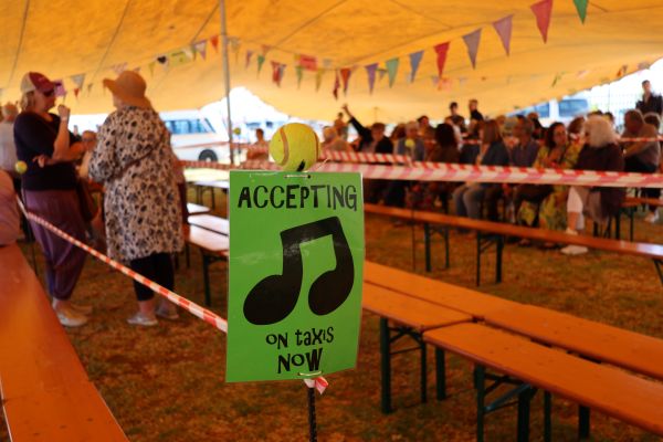 Ons arriveer Saterdagoggend om 10:30 by die feesterrein. Musikante van Darling Music for All sing, speel dromme en kitaar op die verhoog tussen twee skeepsvraghouers met ’n sinkdak tussenin, terwyl mense gou vir oulaas koffie, droëwors of biltong van die slaghuis koop as padkos.