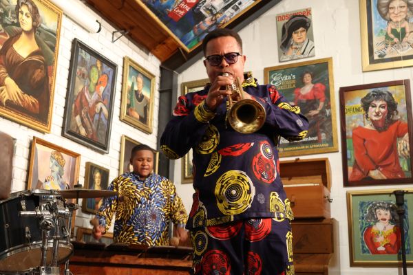 Alizwa Tyala op marimba en Thando Sishuba op trompet van die Marimba All Stars.